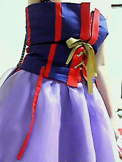 てなわけで例のビスチェは脇のところでコンシールで着る予定でしたがコンシールのオープンファスナーが無かったので脇を縫い付けてビスチェの真ん中をジョキっと切って真ん中ファスナーで着ることにしました^^